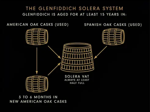 글렌피딕 퍼페츄얼 컬렉션은 면세 전용 상품으로 VAT 01~04까지 있습니다. VAT 01과 VAT 02는 숙성 연수가 표기되지 않은 NAS 위스키이며, VAT 03은 15년 숙성, VAT 04는 18년 숙성입니다. 글렌피딕의 자랑인 솔레라 시스템을 마케팅 문구로 내세운 것 같습니다. 글렌피딕 솔레라 시스템에 사용되는 VAT에는 늘 위스키가 채워져 있고, 그 때문에 컬렉션 이름을 Perpetual (끊임없는) 이라고 짓지 않았나 싶습니다. 글렌피딕의 솔레라는 셰리, 포트 와인을 숙성하는 솔레라 시스템과는 조금 다른데요, 글렌피딕은 아주 커다란 VAT(대형 통)을 이용해 위스키를 블렌딩하고 숙성합니다. 글렌피딕이 이런 솔레라 시스템을 사용하는 이유는 '일관성'을 유지하기 위함이라고 합니다.